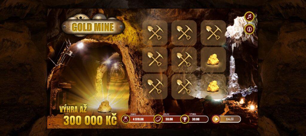 Gold Mine od Maxy je jednoduchý los s pěkným designem zlatého dolu, kde se stírá devět herních polí a hledají se zlaté valouny. Jejich počet ovlivňuje výhru, od jednoho za 15 Kč až po maximálních 9 kusů – maximální možná výhra činí 300 000 Kč. Los stojí 30 Kč a jeho pravděpodobnost výhry činí až 80,65 %.