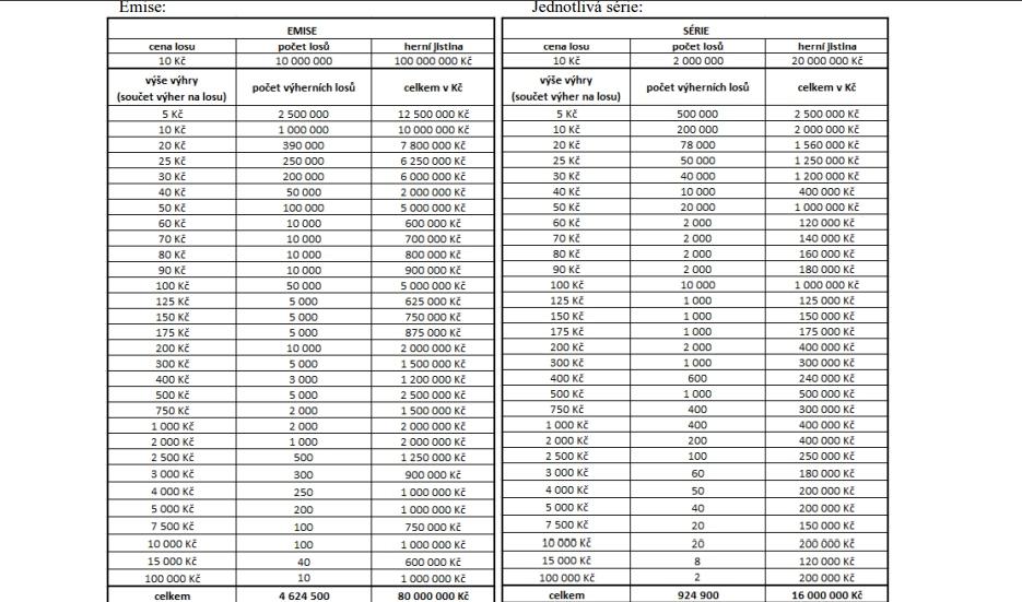 - Všechny výherní losy dohromady vyplatí 60 000 000 Kč.